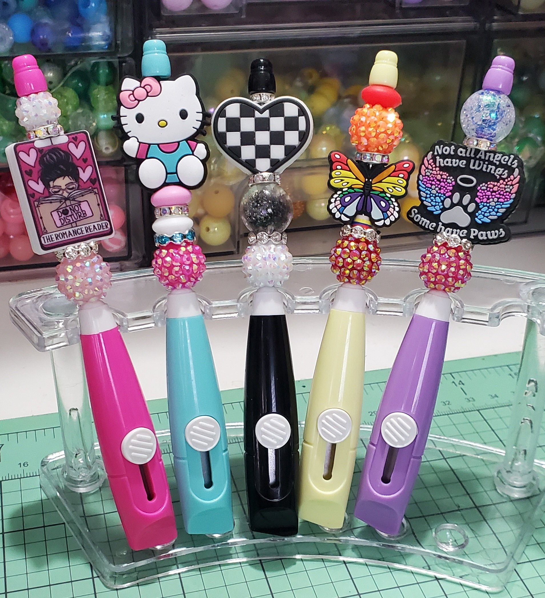 Adorable handmade box cutters. Choose the one you like by the color of the barrel. Please see photos for more detail. Be sure to check out my other items. All sales are final.